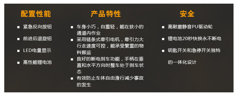 采用進(jìn)口驅(qū)動輪,配置可靠的盤式剎車系統(tǒng),動力強勁,操控自如,配有大容量的高效能電池,電量持久,帶電量顯示表,低電壓報警燈,采用重型設(shè)計,結(jié)構(gòu)緊湊,操作視野開闊。
