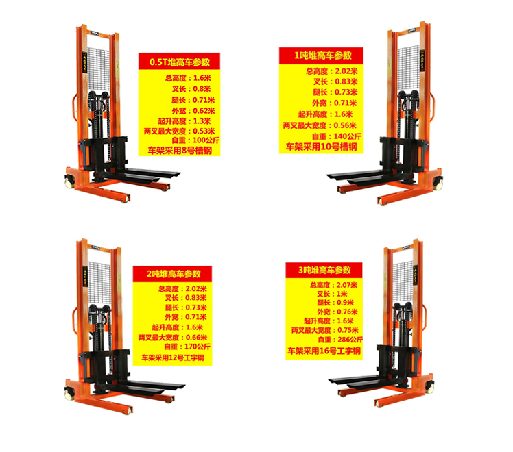 4. 手動液壓堆高車是一種無污染的手動液壓堆高車,具備運輸靈巧,操作靈活,轉(zhuǎn)彎半徑小等特點。
